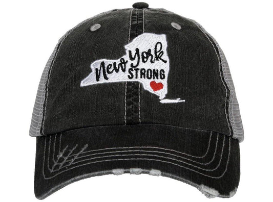 New York hats | New York Strong ~ New York Tough ~ Embroidered ~ Distressed trucker cap