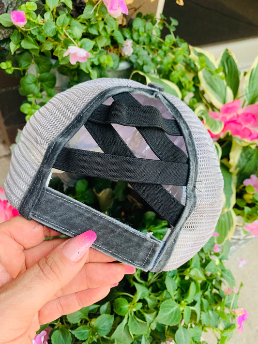 Aint no hood like motherhood Hat Embroidered distressed gray womens trucker cap Mom Mama