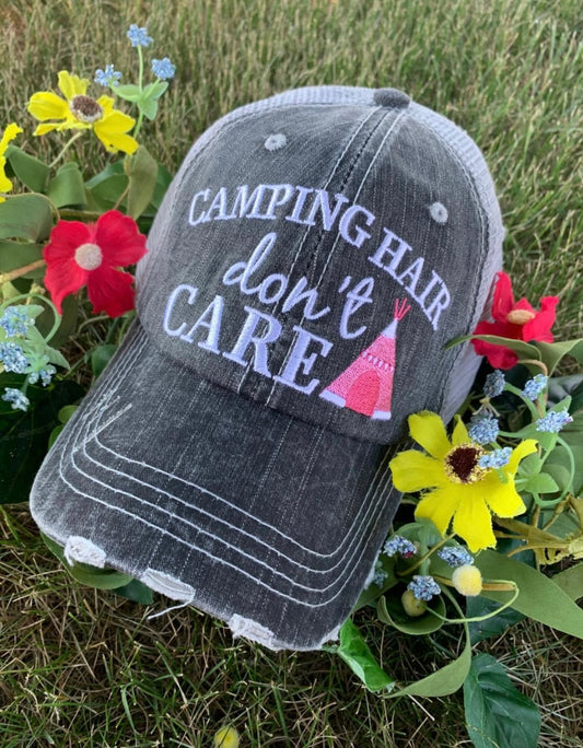 Camping hats CAMPING hair dont care Embroidered distressed trucker cap