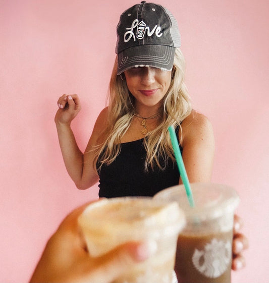 Coffee hat Love Starbucks Caribou Coffee cup Iced coffee please Embroidered trucker caps