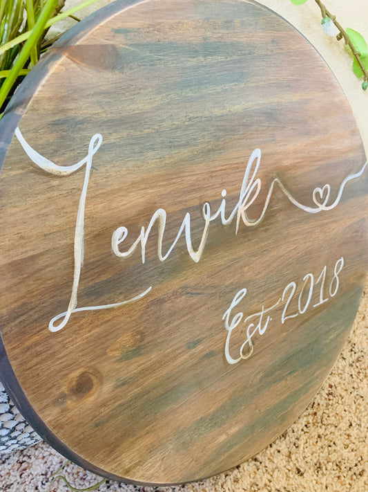 Custom hand painted art { Last name sign } Solid pine • You choose colors