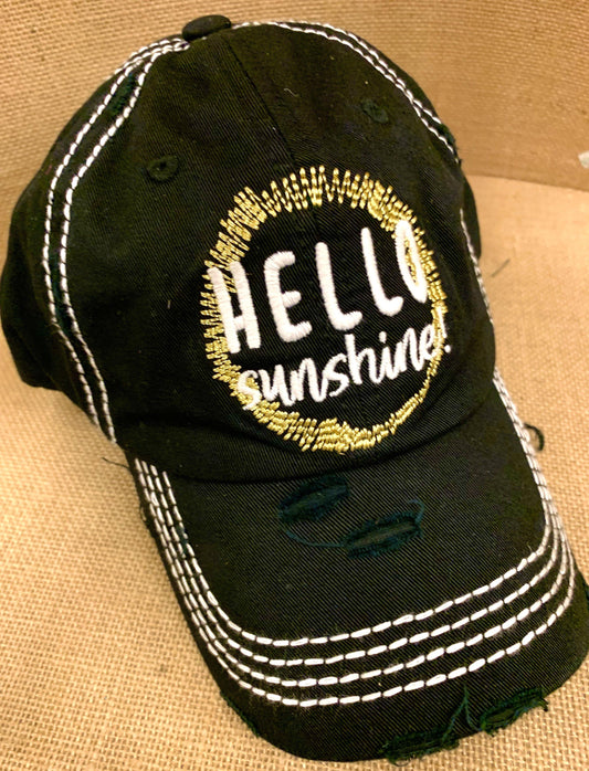 HELLO SUNSHINE hat Embroidered black distressed womens trucker cap