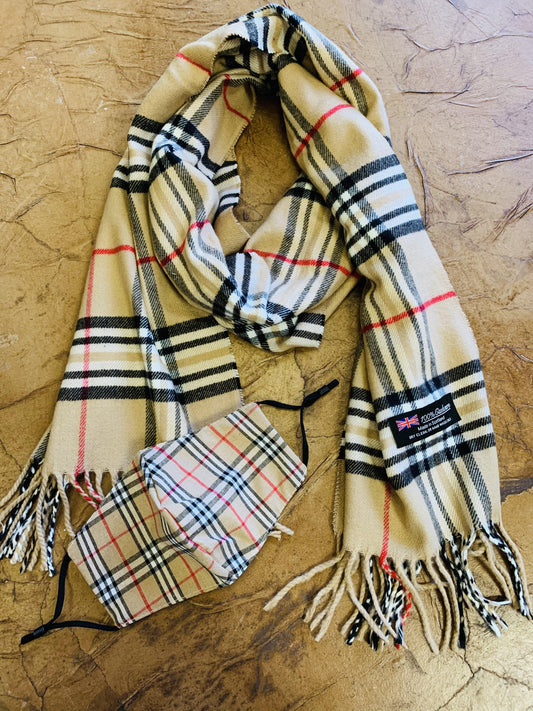 Scarf Camel vintage check Designer inspired Plaid Brown Red White Black Unisex