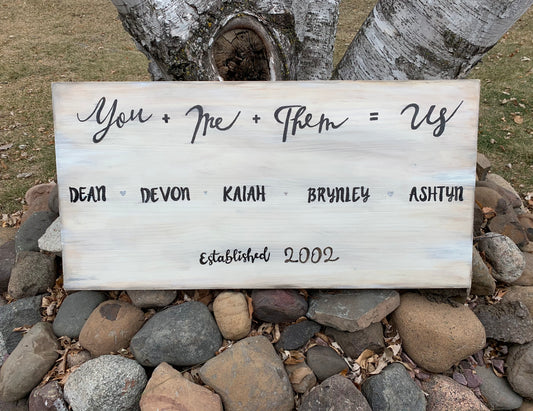 Wood signs { Hand painted } You + Me + Them = Us. Solid pine. Family. Wood. Signs. Barn wood.