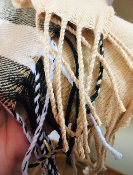 Cashmere Scotland Scarf | 80 x 30 | Camel brown vintage check plaid | Beautiful as a wrap/shawl