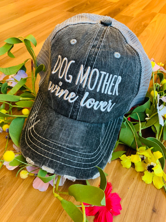 Hats and shirts { Dog mother, Wi.ne lover } { Cat mother, Wi.ne lover } { I love my dog } { I love my cat } { Pawsitive vibes only } Embroidered distressed trucker.