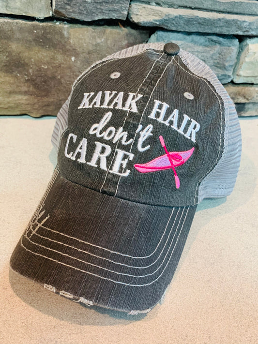 Kayak hats Kayak hair dont care Teal or pink kayak Unisex trucker cap