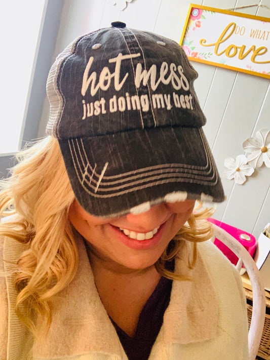 HOT MESS just doing my best hats Embroidered gray distressed unisex trucker caps Womens gift