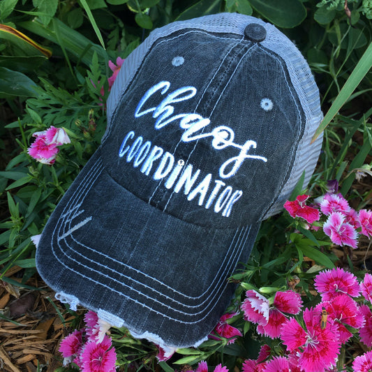 Chaos coordinator Hats Embroidered distressed gray trucker caps Unisex