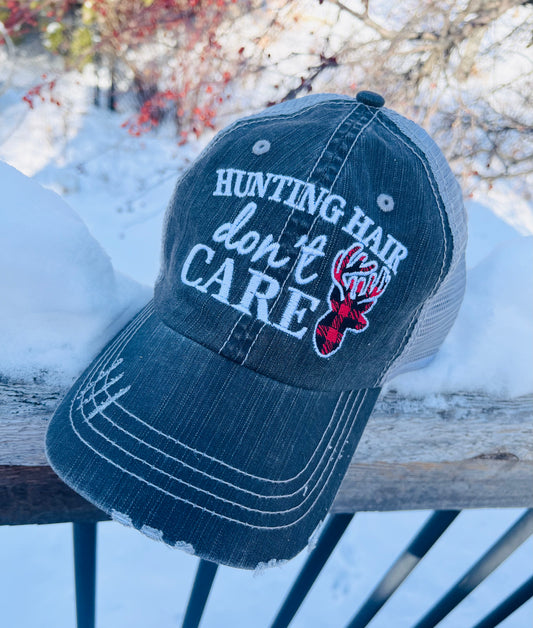 Hunting hat Hunting hair dont care Buffalo check deer Embroidered Buck Hunt Hunter