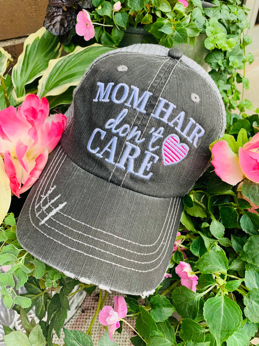 Mom hats Mom hair dont care Embroidered trucker womens baseball caps Teal pink heart