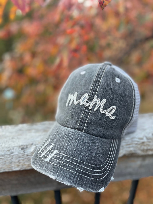 Mama hat Bling rhinestones trucker hat Gray distressed womens gift Mom Momma