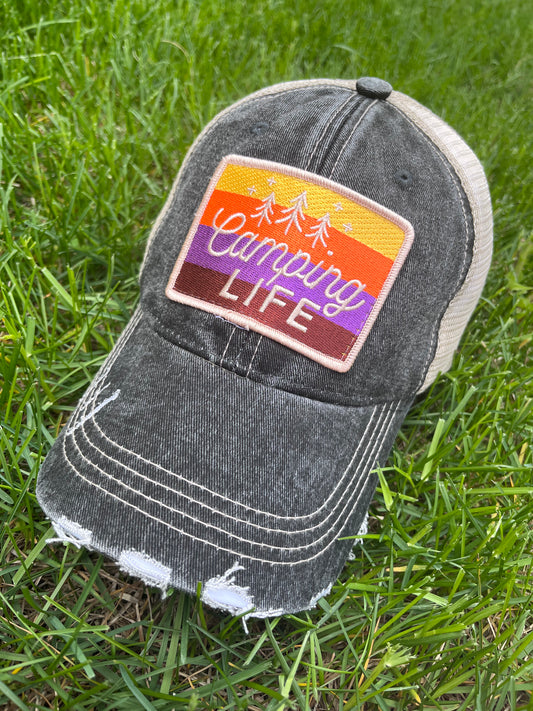 Im a happy CAMPER Embroidered distressed trucker cap Camping life Assorted styles