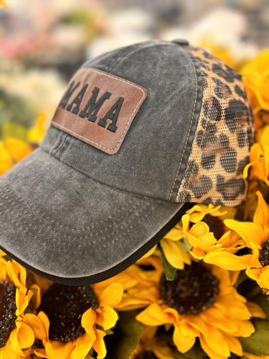 Mama hat Leopard mesh back Trucker cap Leather label Mom accessories and gifts