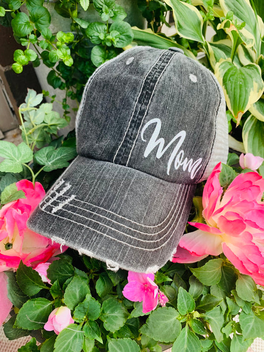 Mom hat Distressed gray trucker cap Grandma Nana Gigi