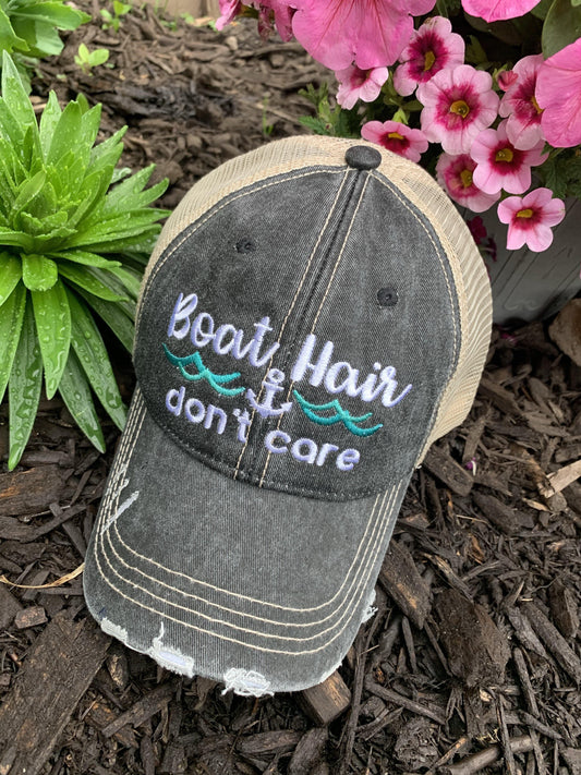 Boat hats Boat hair dont care Black embroidered trucker cap Adjustable mesh back