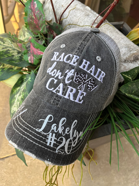 Personalized distressed gray Racing hats Weekends are for racing Race hair dont care Raceday is the best day Custom hats made by Stacy Bling it up! Mom hats