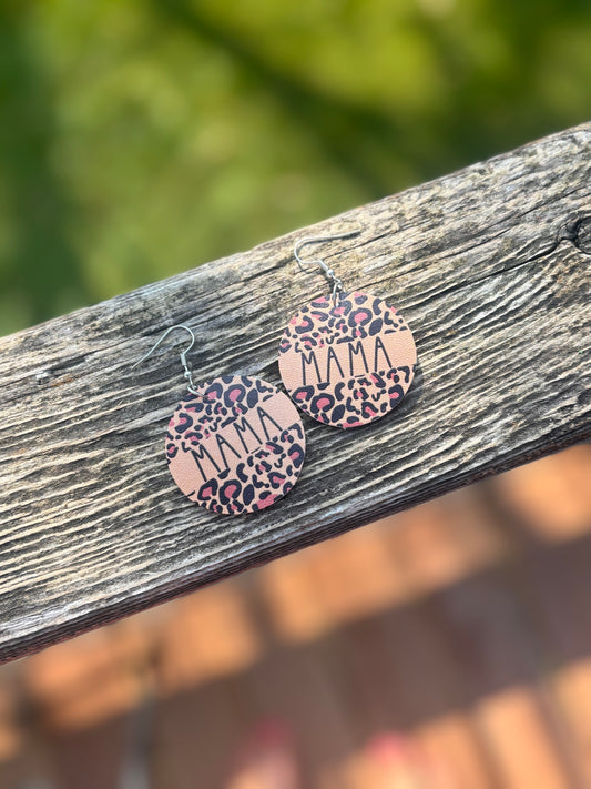 Mama earrings Round womens leopard print faux leather round Mom Animal print Jewelry gift womens
