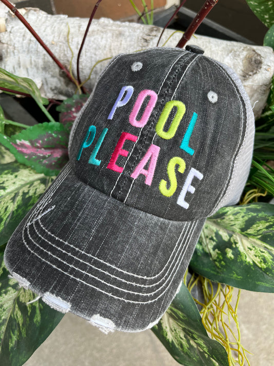 Pool please hats Embroidered trucker caps Assorted colors and styles
