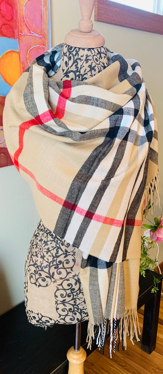 Cashmere Scotland Scarf | 80 x 30 | Camel brown vintage check plaid | Beautiful as a wrap/shawl