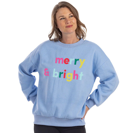 Sweatshirt Merry and Bright holiday Christmas shirt Pink blue or white