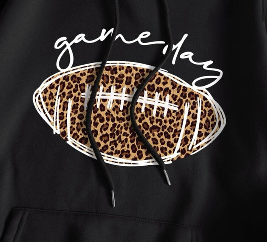 Gameday football hoodie sweatshirt Black with leopard print ball Sports
