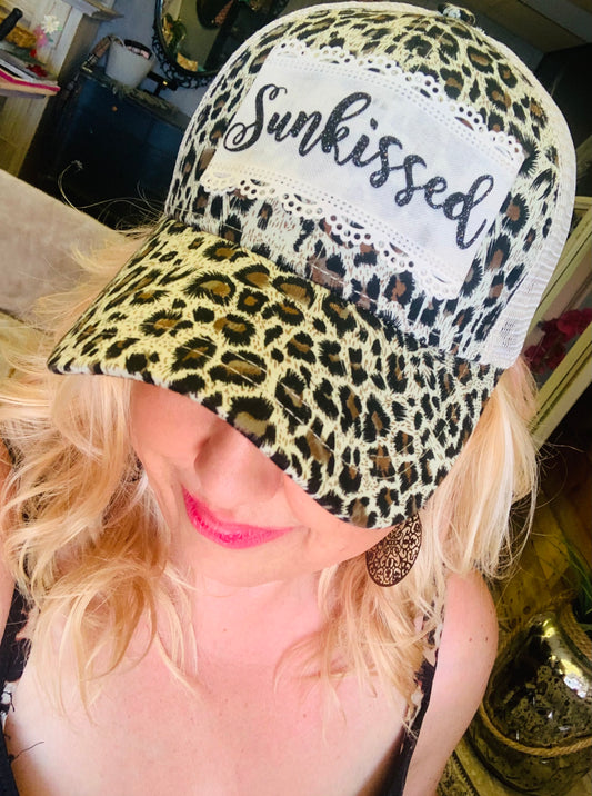 SUN KISSED hat Leopard Summertime Vacation cap Sunshine