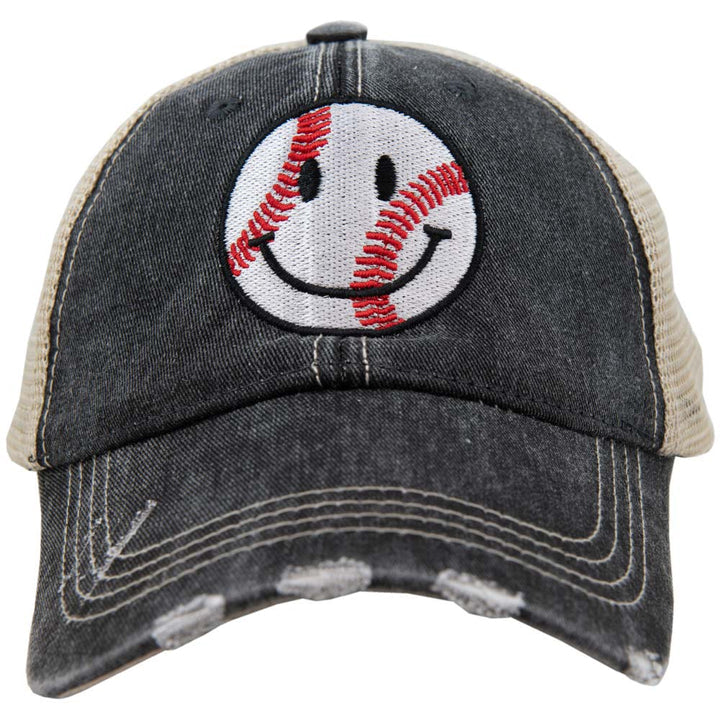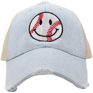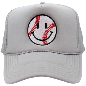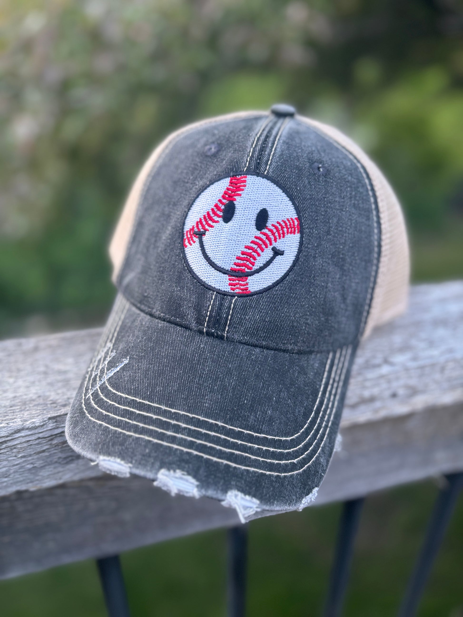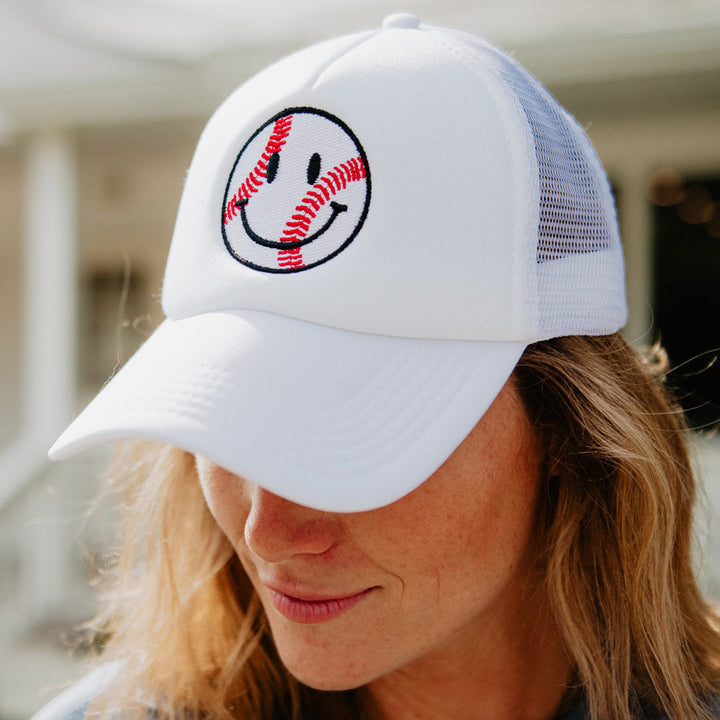 Baseball smiley happy face trucker hats Sports mom Gameday