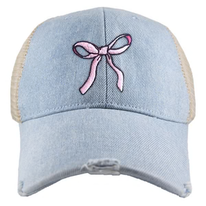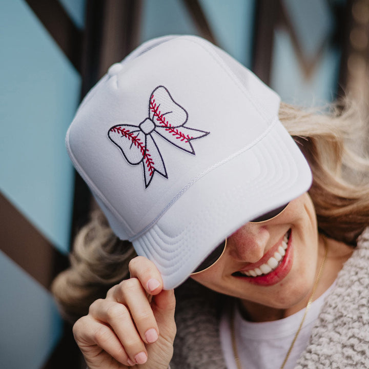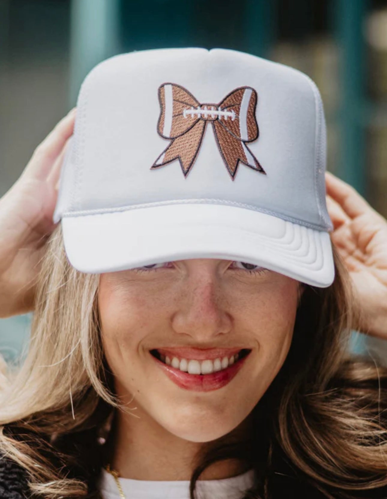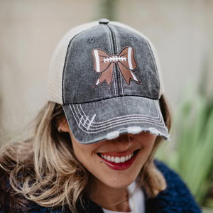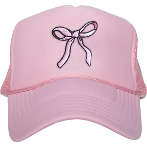 Hats Embroidered coquette bow baseball foam trucker cap Football gray distressed Sports mom Game day Pink bow Leopard Womens Mens Unisex